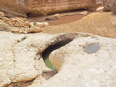 לאחר כחצי ק”מ של צעידה נגיע לשלט הכניסה לשמורה. 200 מטר נוספים של צעידה יביאו אותנו לראש המפל, שם נרד בזהירות עם הסימון כמה מדרגות סלע אל תחתית הערוץ ונמשיך לצעוד עוד כ- 300 מטר אל גבי המים האוצרים את מי השטפונות: בימים אלו הגבים מלאים ומזמינים. רק בזהירות, אין להיכנס לנחלים בזמן גשמים מחשש לשיטפונות.